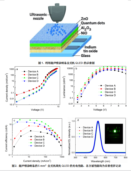 值得关注的是,基于量子点背光源技术的液晶显示器已经成功走向商业化。然而,目前电致发光的QLED大都基于有机、无机杂化的器件结构。而有机材料的对水氧极其敏感,因此对器件的制备及后期封装提出了严格的要求,增加了器件的制备成本。因此,寻求性能更加稳定的无机材料作为电荷传输层是解决上述挑战,推动QLED市场化的关键。