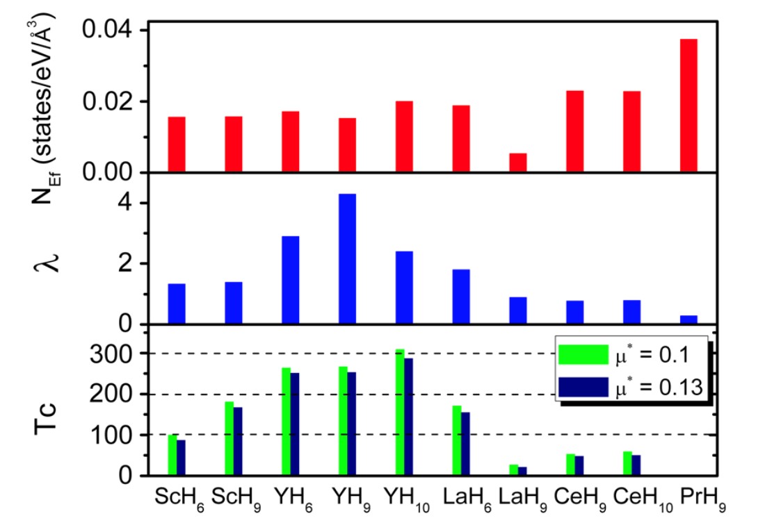 高压下不同笼状化合物的超导转变温度(下图)