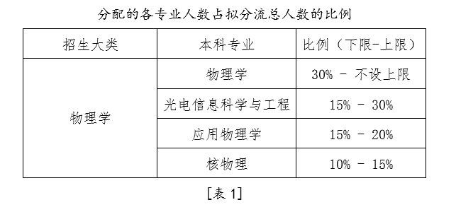 1.专业分流需在满足国家各个物理专业人才储备的前提下,最大限度地满足学生个人意愿,按照“自主申报、征集调剂、择优录取”的总原则进行。