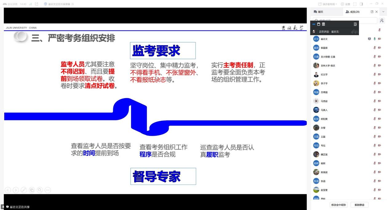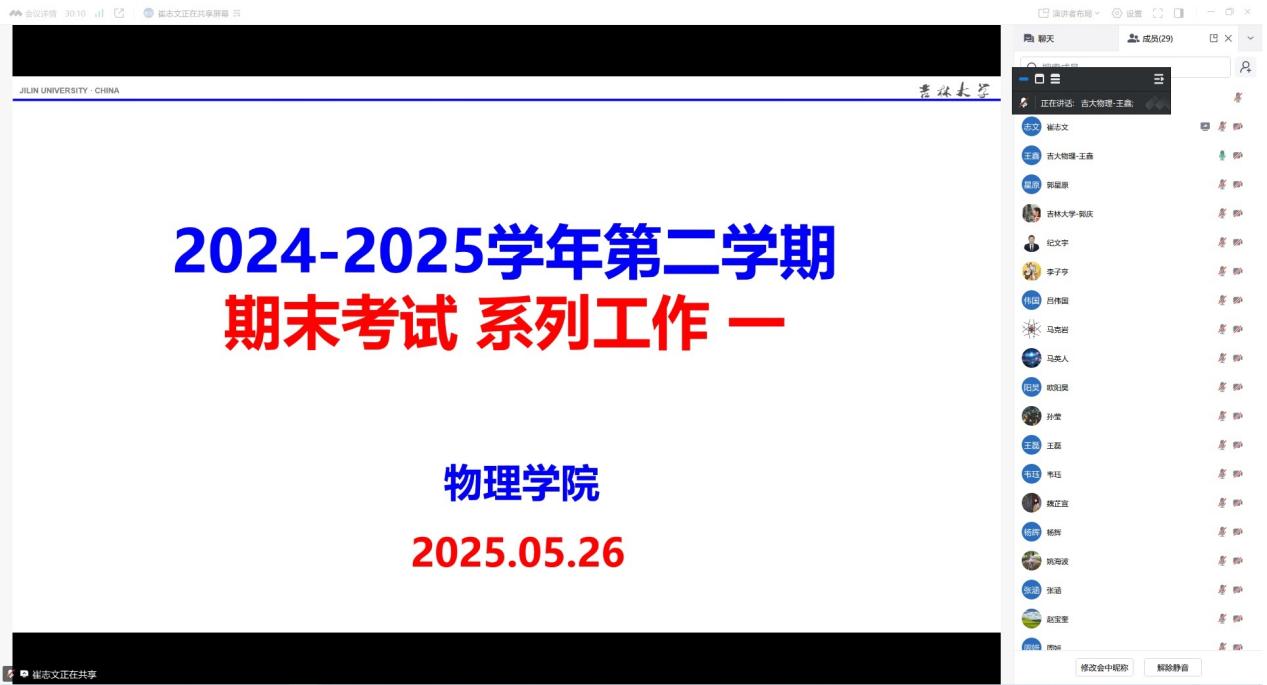 在线上召开了2024-2025学年第二学期期末考试考务工作会,校教学督导专家崔志文及香蕉视频