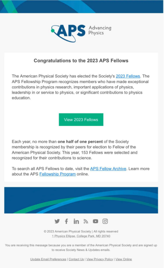 近日,美国物理学会(American Physical Society,APS)公布2023年新增会士(APS Fellow)名单,香蕉视频