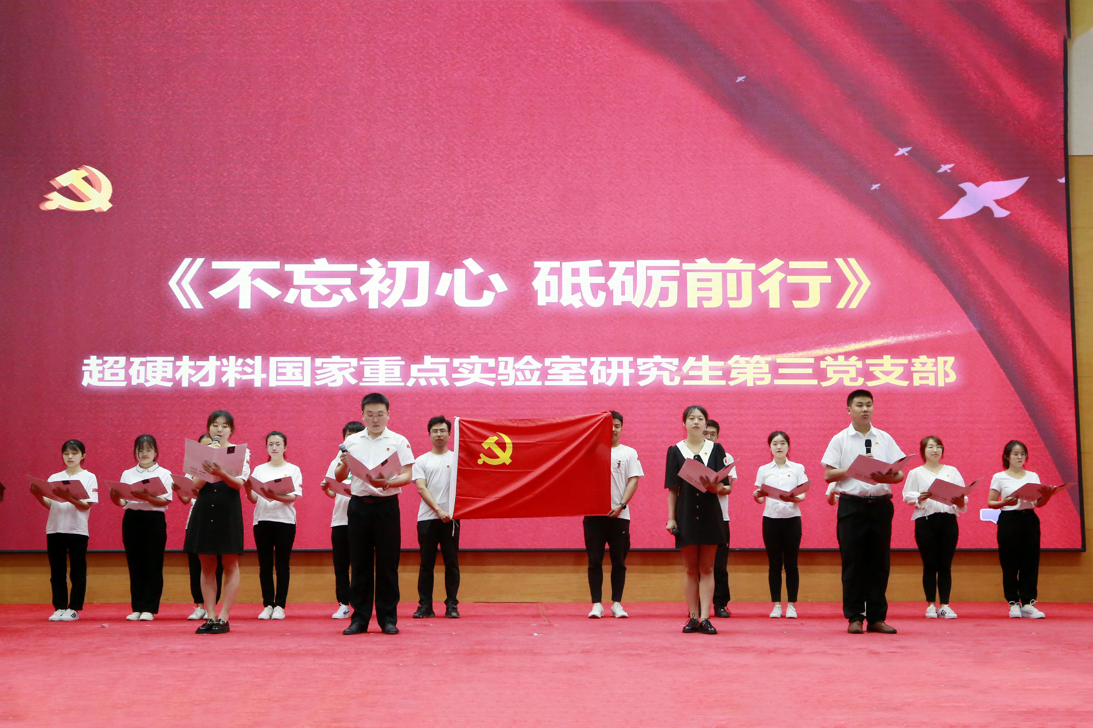鲜红的党旗,经历了100个春秋的洗礼,显得格外飒爽多娇,庄严的党徽,经过了100载的锤炼,显得更加坚若磐石。胸怀千秋伟业,恰是百年风华,全院师生党员将以此次活动为契机,继续把党史学习教育落地生根,发扬“坚韧不拔、追求卓越”的物理人精神,以更加饱满的热情和干劲投入到一流学科建设实践中,以永不懈怠的精神状态、一往无前的奋斗姿态,为夺取党的伟大事业新胜利而不懈奋斗!