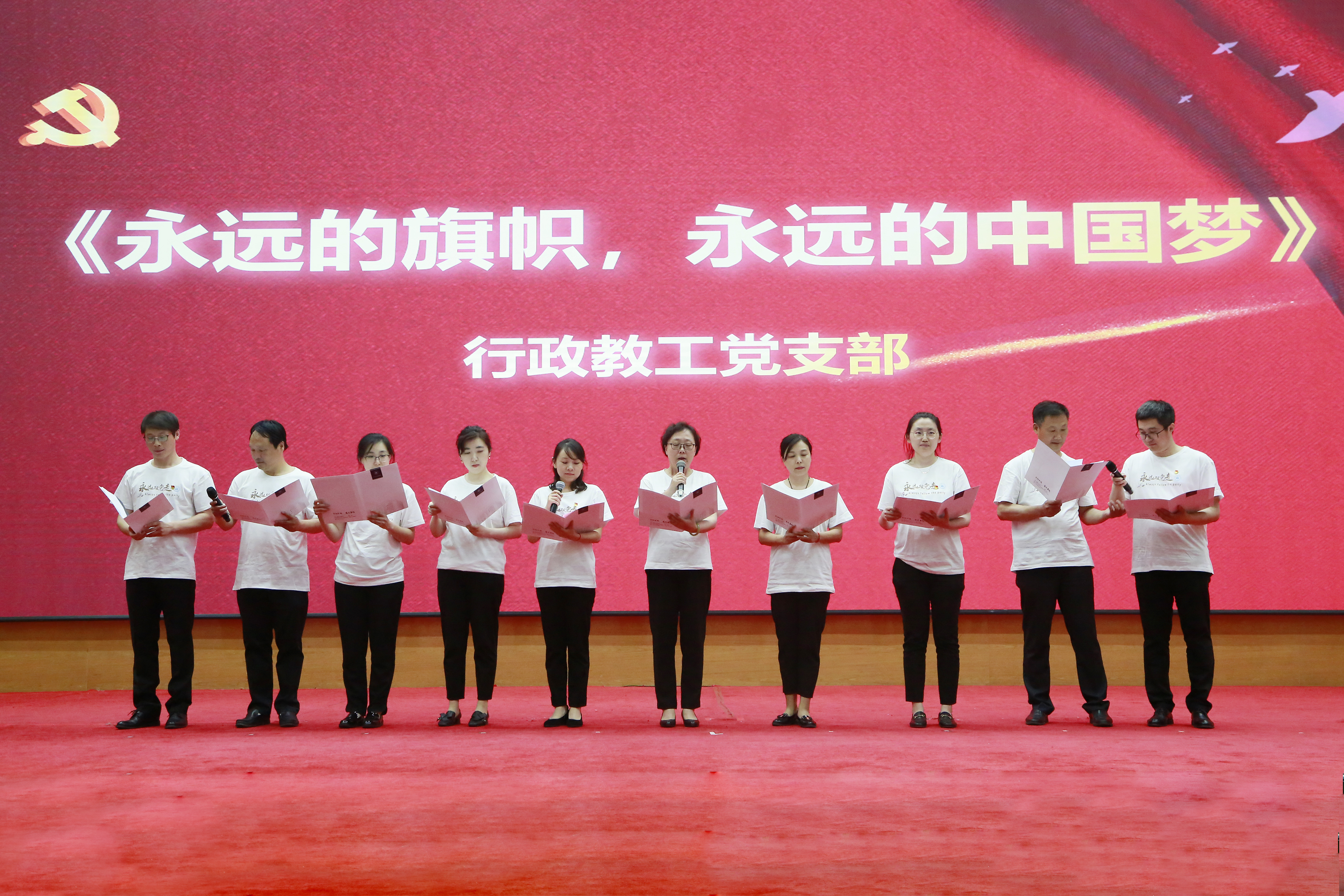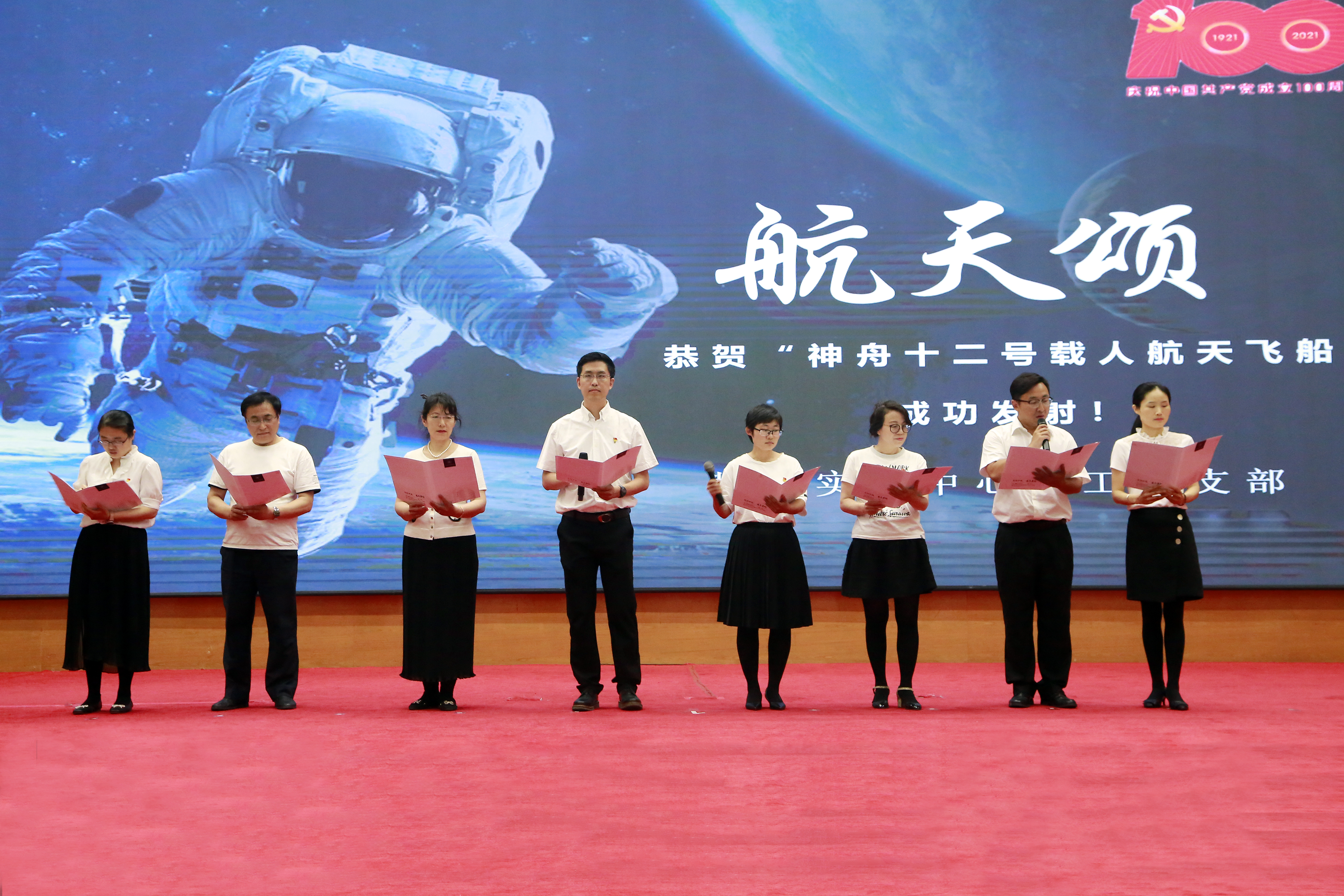 本次诗歌朗诵会以党支部为单位,以庆祝建党100周年为主题。会前各支部精心组织排练,广大党员积极参与,表达了对祖国的崇敬和对党的热爱。