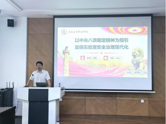 在讲解过程中,杨景将实验室安全管理与深入贯彻中央八项规定精神相结合。他强调,中央八项规定精神所倡导的务实、清廉、节俭等作风要求,在实验室安全管理中同样具有重要的指导意义。务实,就是要脚踏实地做好实验室安全管理的各项工作,不搞形式主义,不敷衍塞责;清廉,就是要坚决杜绝在实验室设备采购、项目审批等环节中出现违规违纪行为,确保权力在阳光下运行;节俭,就是要合理使用实验室资源,避免浪费,提高资源利用效率。