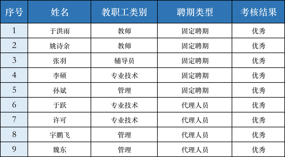 党委会、党政联席会讨论通过,确定考核结果如下: