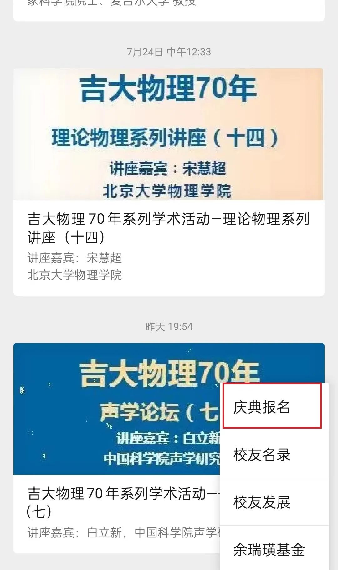 物理70年庆典注册报名窗口,报名截止日期9月17日,欢迎校友报名参加。