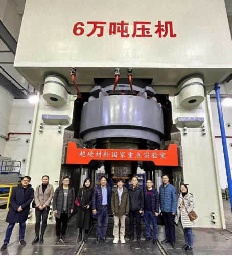 调研期间,由超硬材料国家重点实验室、综合极端条件高压科学中心副主任刘兆东陪同,吴正茂一行实地考察了六万吨大压机装置、综合极端条件高压科学中心。
