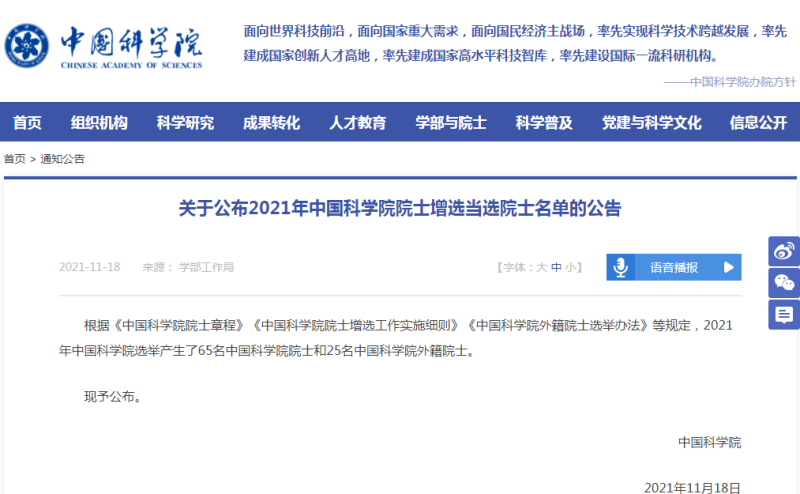 院士增选当选院士名单,此次选举共产生了65名中国科香蕉视频