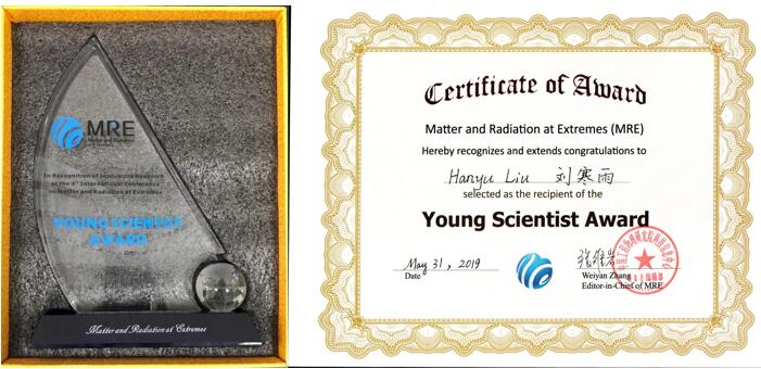 2019年5月31日,第四届国际极端条件下的物质与辐射学术会议(ICMRE)将“MRE青年科学家奖”(MRE Young Scientist Award)授予香蕉视频