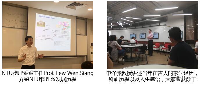 物理系副主任刘文祥(Lew Wen Siang)教授介绍了南洋理工大学(Nanyang Technological University,NTU)的发展历史,该校是新加坡一所科研密集型大学,在纳米材料、生物材料、功能性陶瓷和高分子材料等许多领域的研究享有世界盛名,是工科和商科并重的综合性大学。