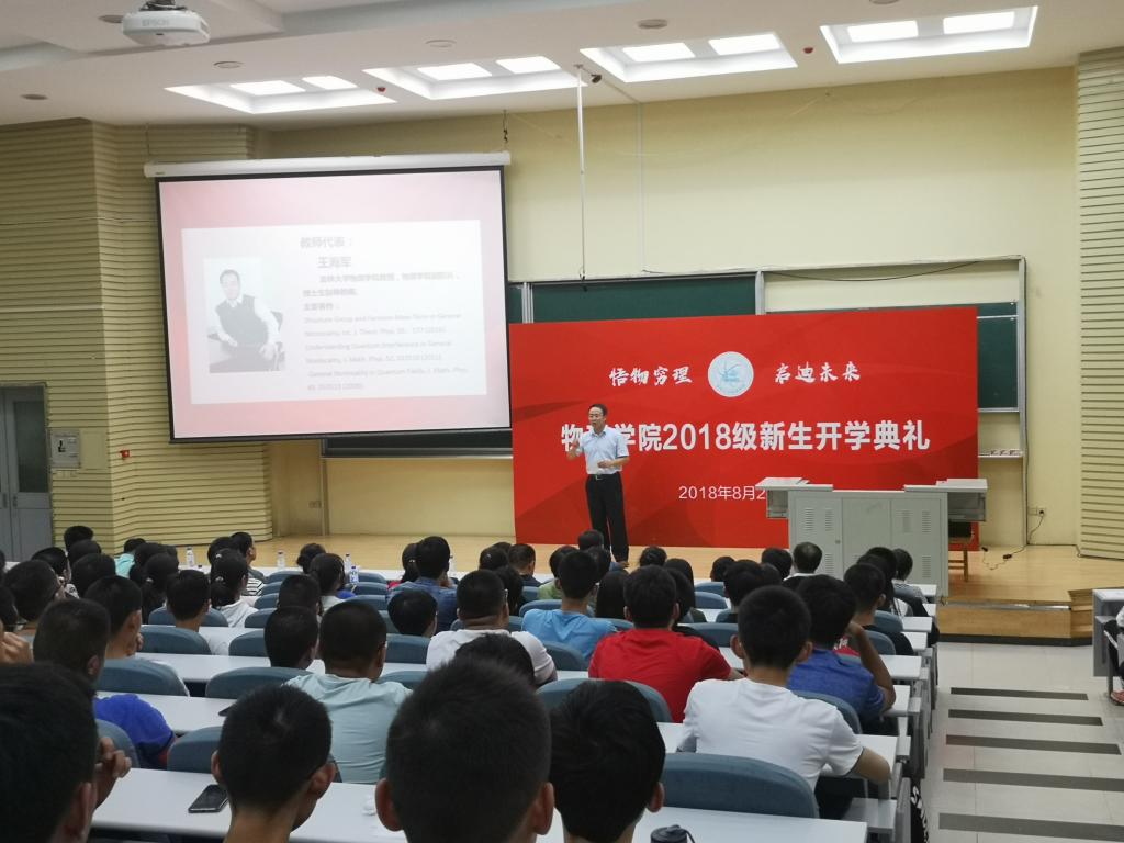 ,开始大学学习的美好憧憬。他号召全体新生在坚持学习,勇敢追求真知和梦想,做个让自己骄傲的物理人。