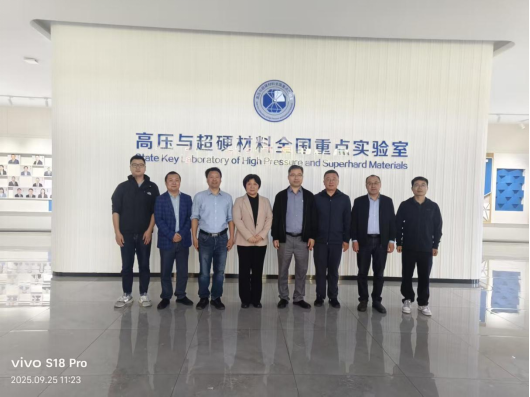 会后,范韶维、冯培忠一行在杨景与高压与超硬材料全国重点实验室副主任隋永明的陪同下参观了实验室。隋永明介绍了实验室的主要研究方向、技术支撑体系与重要成果。参观过程中,范韶维书记与杨景书记还围绕推动党建与业务工作深度融合、以高质量党建引领事业发展等话题交流了各自的做法与经验。