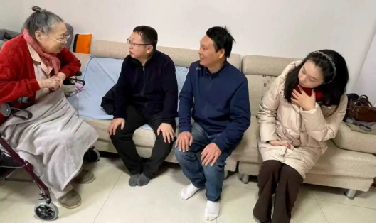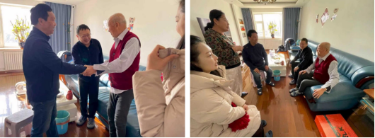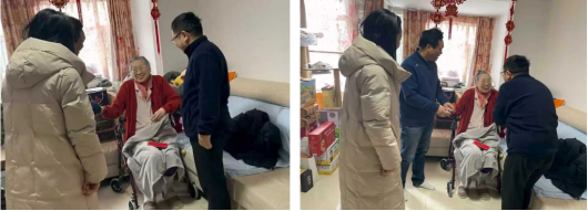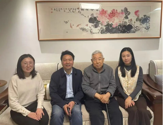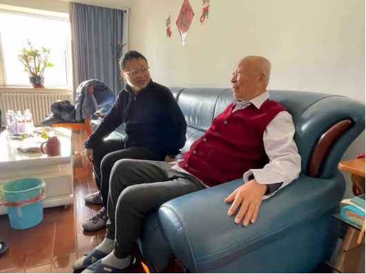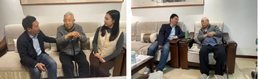 的邹勃、杨景、侯博宇和周淼,带着全院师生的心意,先后看望了王文金和姚玉洁两位退休老师。