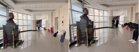 学生代表上前轻轻擦拭雕像,细致拂去雕像上的微尘,用实际行动表达对先贤的崇敬与缅怀。