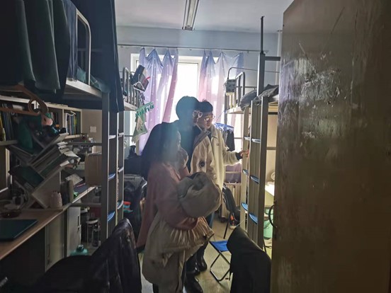 每次查寝前,部员都会做充分的准备工作,制定出查寝的最优路线,并商讨出最合适的查寝时间。查寝时,张羽老师、刘扬老师和王子璁老师都会对每间寝室逐一检查,并亲切的与每名同学进行交流沟通,询问同学近期学习生活状况。