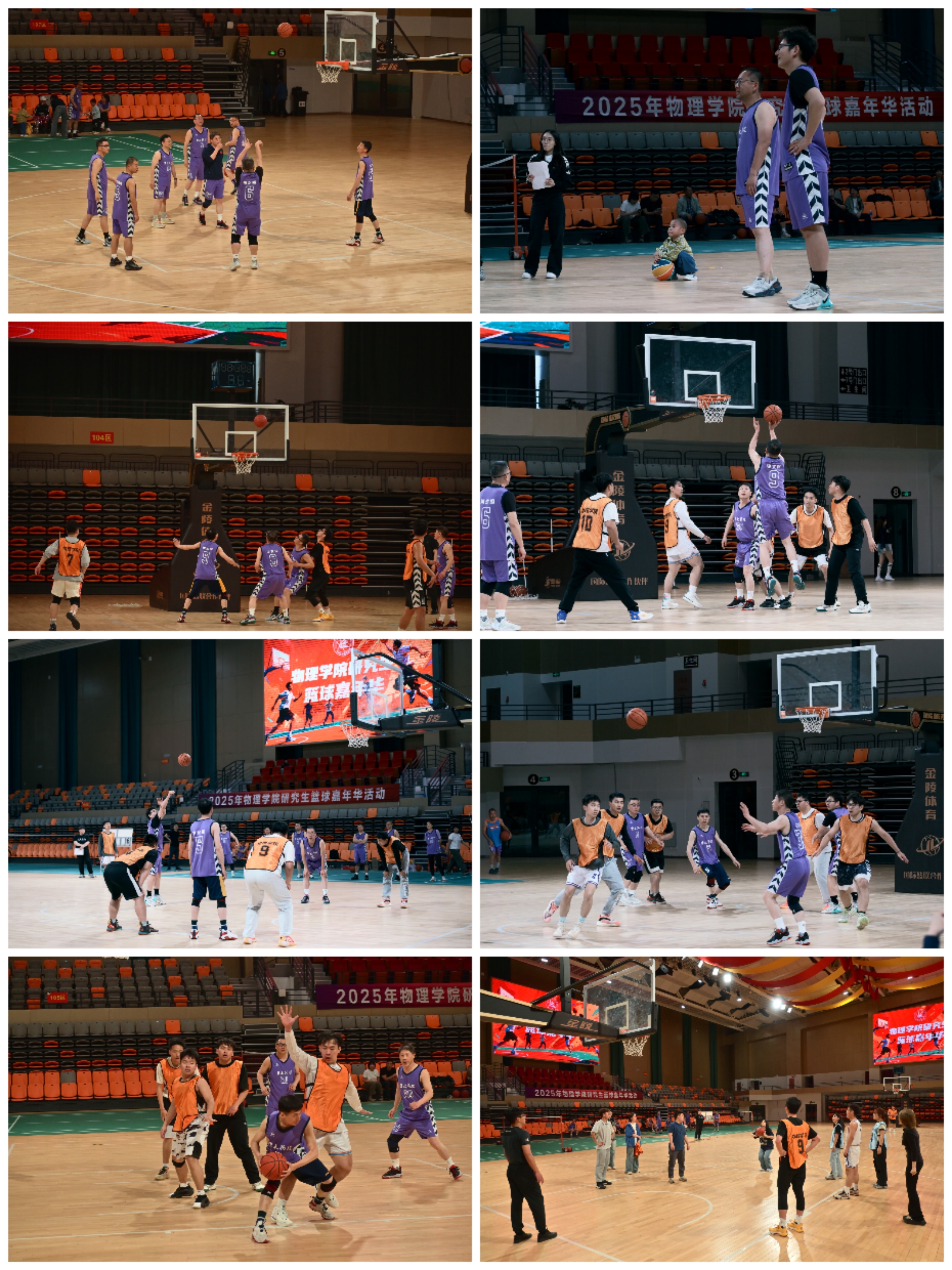 广大师生亦积极响应、踊跃参与:25名老师与50余名研究生组成6支队伍,参与导学5V5篮球赛;95名师生参与三分大赛及趣味赛。