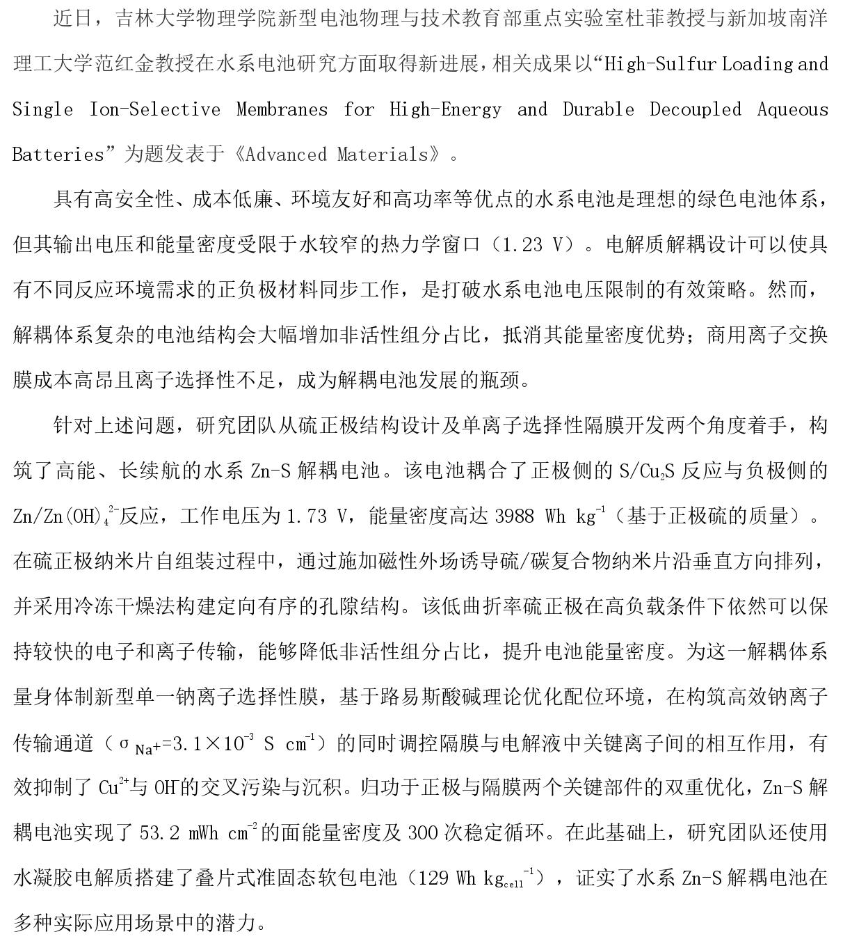 AM | 杜菲教授团队在水系电池研究方面取得新进展