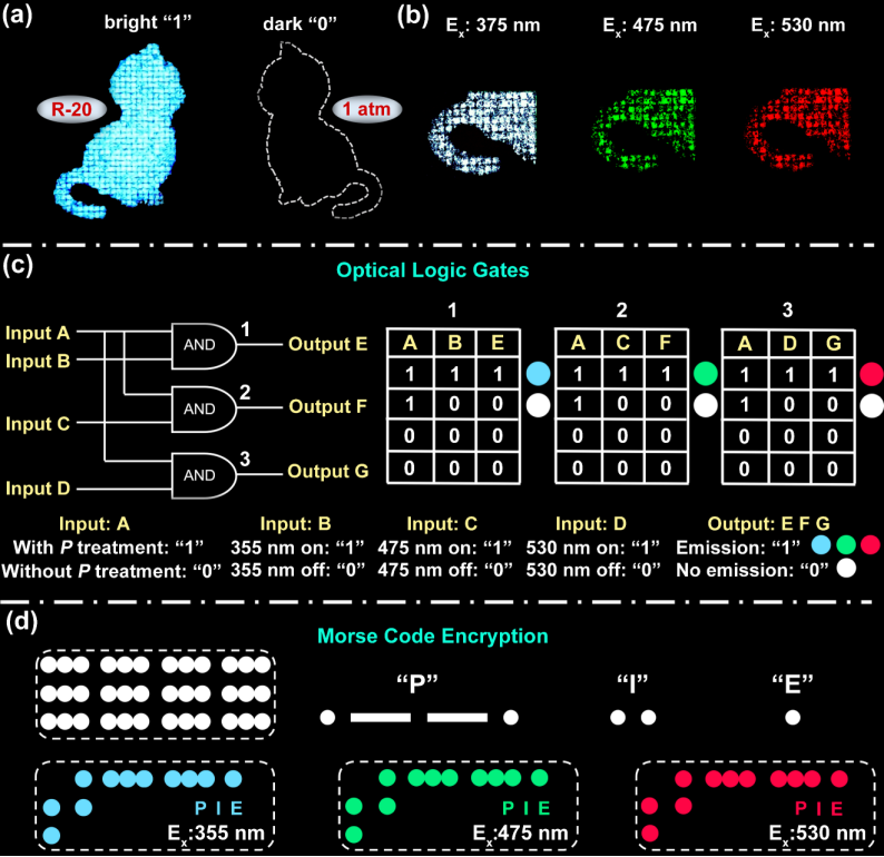 高压与超硬材料全国重点实验室邹勃教授团队肖冠军教授等人,借助压强工程点亮了无辐射锡基金属卤化物,并成功地将高品质发光高压相稳定保存在常压环境,这一常压截获的非晶相发光材料同时展现出激发依赖的动态多色发光调控。高压诱导的不可逆非晶化相变,使我们得以借助大腔体压机实现宏量制备,压强卸载后获得的大质量锡基金属卤化物非晶相发光材料,在固态照明、X射线探测、光学逻辑门与防伪等领域呈现出巨大的应用潜力,推进了压强诱导发光从基础研究迈向实际应用。相关成果以“Pressure-Induced Emission Luminogens Enable Optical Logic Gates toward Lighting, Scintillators and Anti-counterfeiting”为题发表在国际权威期刊《Angewandte Chemie International Edition》上。