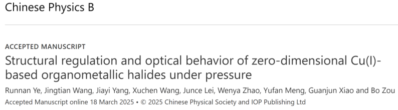 高压与超硬材料国家重点实验室邹勃教授团队肖冠军教授等人,系统研究了零维铜(I)有机金属卤化物在高压条件下的结构演化与发光调控行为,深入揭示了电子结构重排对多发射态发光行为的调控机制,通过高压精确调控晶体内部的铜-铜相互作用以及空间电荷转移,实现了材料发光性能的多发射态调控,为开发新型可调谐无铅金属卤化物发光材料奠定基础。相关研究以“Structural regulation and optical behavior of zero-dimensional Cu(I)-based organometallic halides under pressure”为题发表于《Chinese Physics B》上。