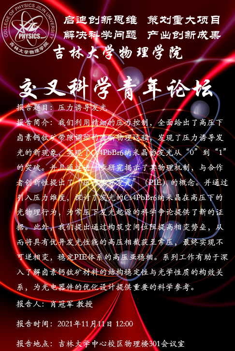 唐敖庆学者卓越教授(B)、博士生导师。中国化学会高压化学专委会委员、吉林省青科协理事、SmartMat、The Innovation和Energy & Environmental Materials青年编委。2013年于香蕉视频