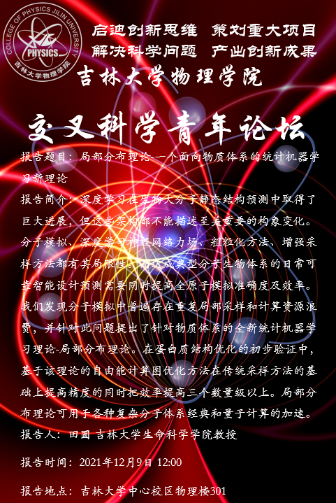 报告题目: 局部分布理论-一个面向物质体系的统计机器学习新理论