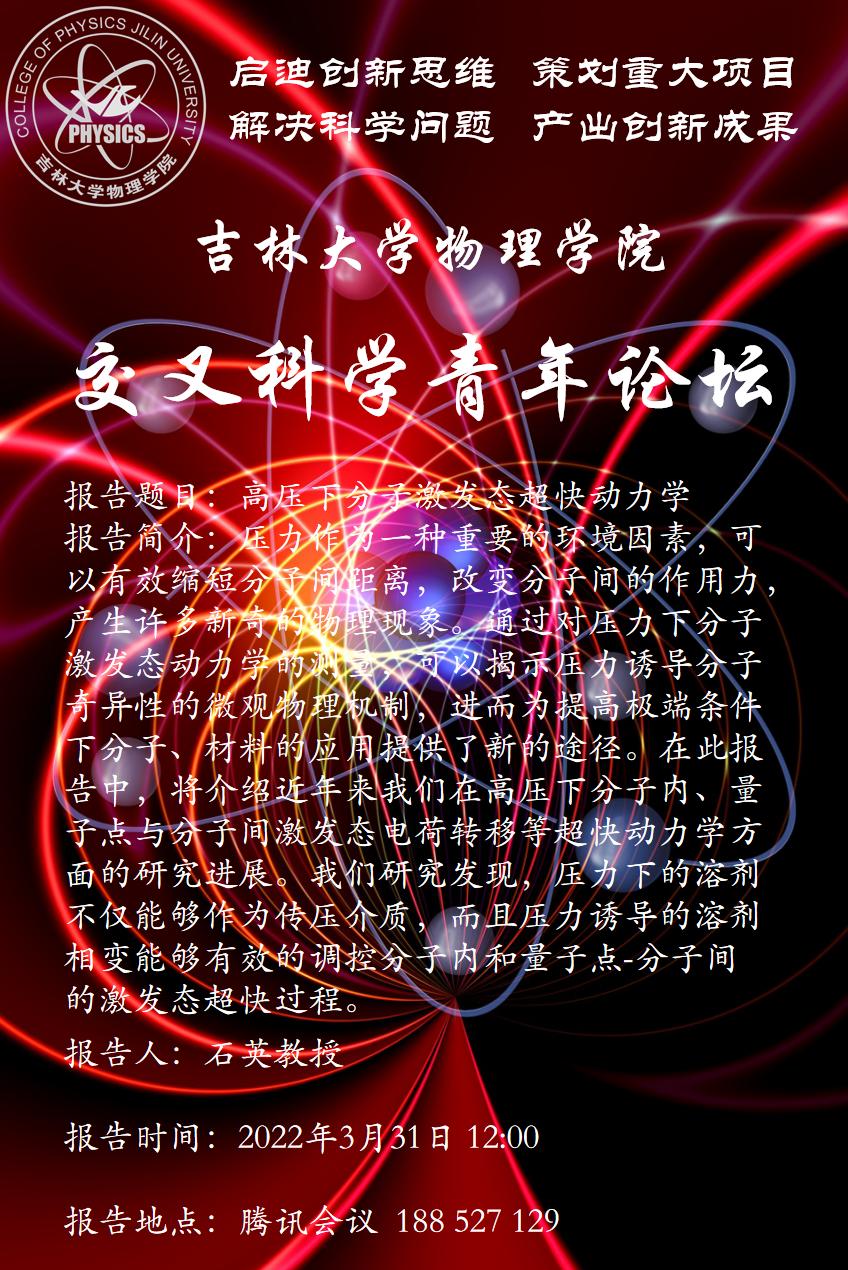 压力作为一种重要的环境因素,可以有效缩短分子间距离,改变分子间的作用力,产生许多新奇的物理现象。通过对压力下分子激发态动力学的测量,可以揭示压力诱导分子奇异性的微观物理机制,进而为提高极端条件下分子、材料的应用提供了新的途径。在此报告中,将介绍近年来我们在高压下分子内、量子点与分子间激发态电荷转移等超快动力学方面的研究进展。我们研究发现,压力下的溶剂不仅能够作为传压介质,而且压力诱导的溶剂相变能够有效的调控分子内和量子点-分子间的激发态超快过程。