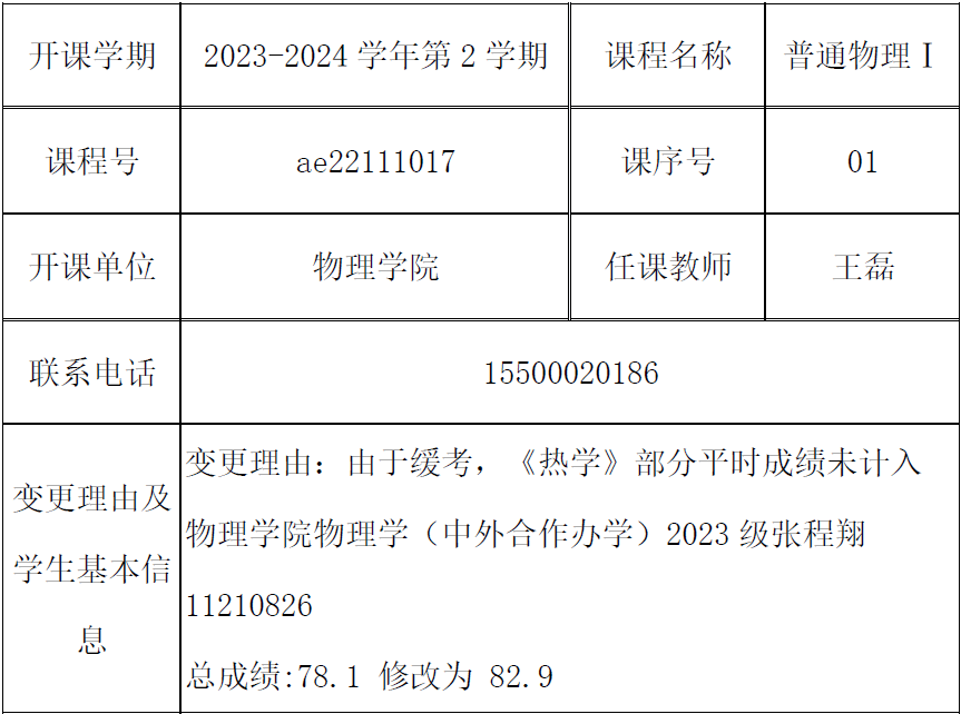 根据《关于进一步明确本科生课程考核等有关问题的通知》(校教字[2018]47号)文件有关精神,现对一下课程成绩更正进行公示: