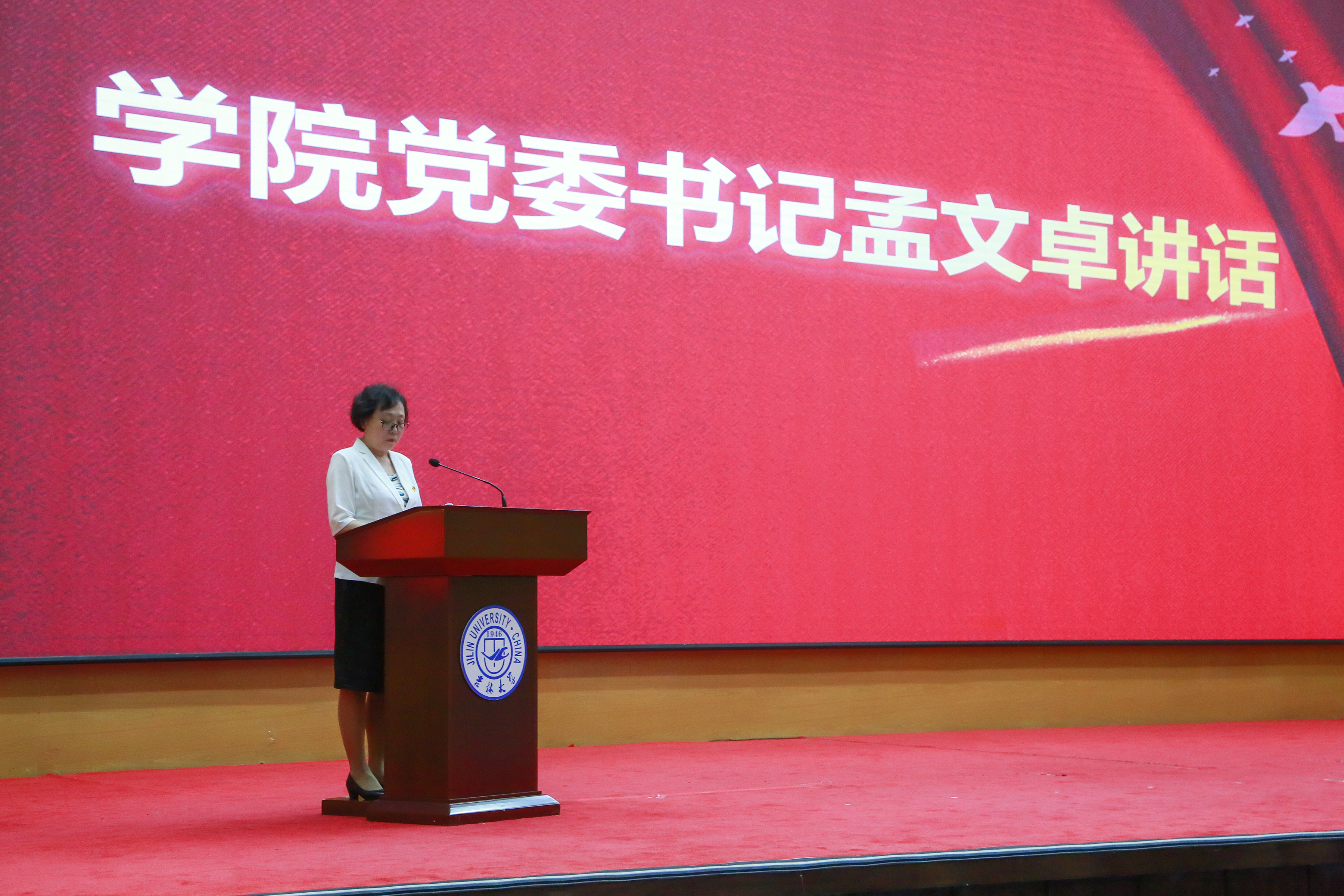 广大党员致以真诚的节日问候。她指出,中国共产党的百年历史,是为中华民族的独立、解放、繁荣,为中国人民的自由、民主、幸福而不懈追求的奋斗史;是把马克思主义基本原理同中国具体实际相结合、不断推进马克思主义中国化的求索史;是我们党经受各种风浪考验、不断攀登各项事业新高度的创业史;更是伟大祖国告别屈辱落后、朝着伟大复兴顽强跋涉的发展史。面对伟大的时代召唤,我们要善于从历史中汲取营养,凝聚引领发展的不竭动力。每一名党员在学习历史中牢记责任,在展望未来中奋力前行,进一步坚定信念、改革创新、真抓实干,主动服务一流学科建设大局,以最坚定、最自觉、最实在的行动向党的生日献礼。最后,她对全院党员提出了三点希望,一是以对党忠诚为基,坚定理想信念追求。二是要以务实为民为根,争当党员先锋模范。三是以立德树人为本,永担时代发展重任。