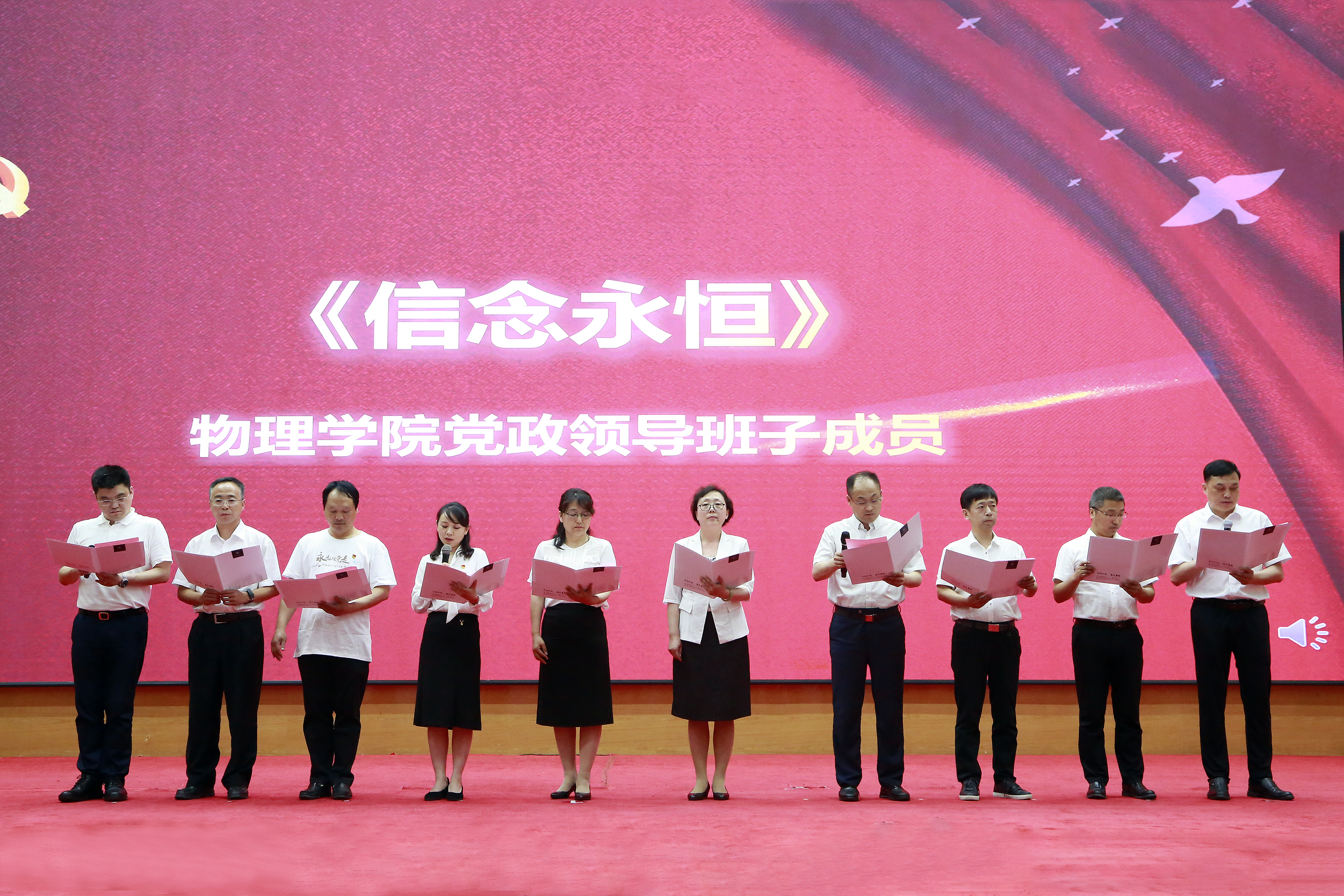 鲜红的党旗,经历了100个春秋的洗礼,显得格外飒爽多娇,庄严的党徽,经过了100载的锤炼,显得更加坚若磐石。胸怀千秋伟业,恰是百年风华,全院师生党员将以此次活动为契机,继续把党史学习教育落地生根,发扬“坚韧不拔、追求卓越”的物理人精神,以更加饱满的热情和干劲投入到一流学科建设实践中,以永不懈怠的精神状态、一往无前的奋斗姿态,为夺取党的伟大事业新胜利而不懈奋斗!