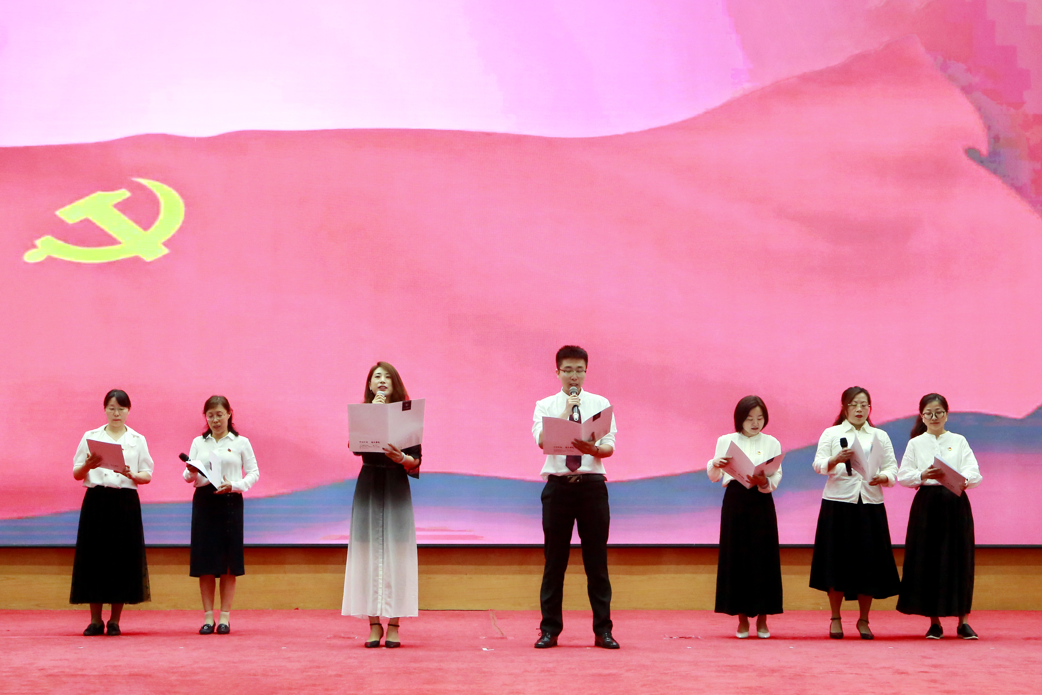 本次诗歌朗诵会以党支部为单位,以庆祝建党100周年为主题。会前各支部精心组织排练,广大党员积极参与,表达了对祖国的崇敬和对党的热爱。