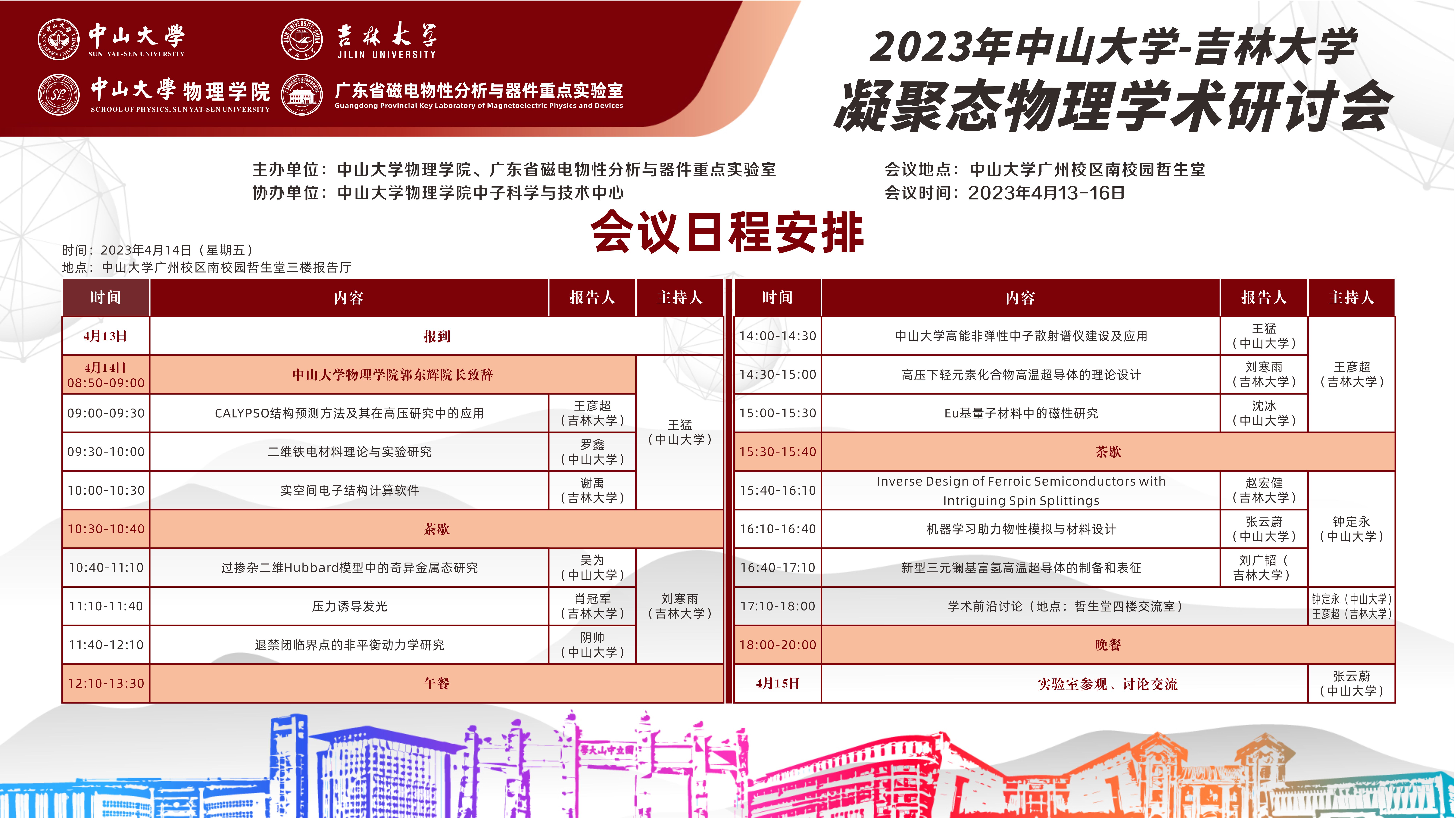 凝聚态物理学术研讨会将于4月13-16日在中山大学广州校区南校园召开,本次研讨会由中山大学香蕉视频
