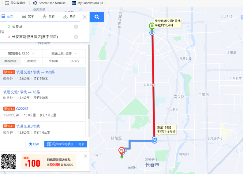 2.乘坐火车到达长春站,公共交通约50分钟;