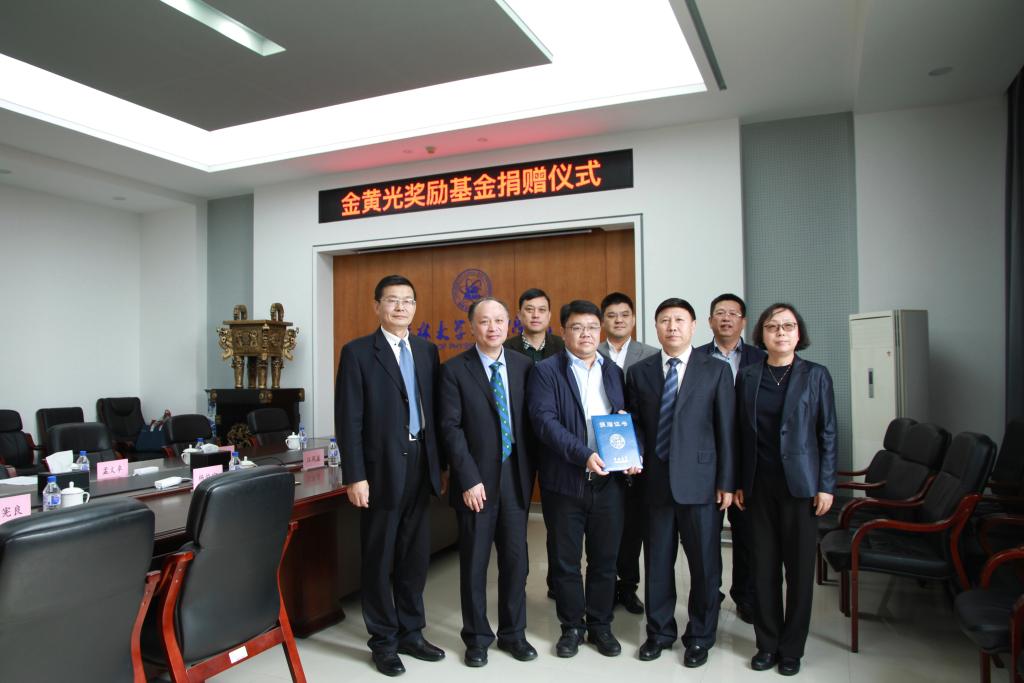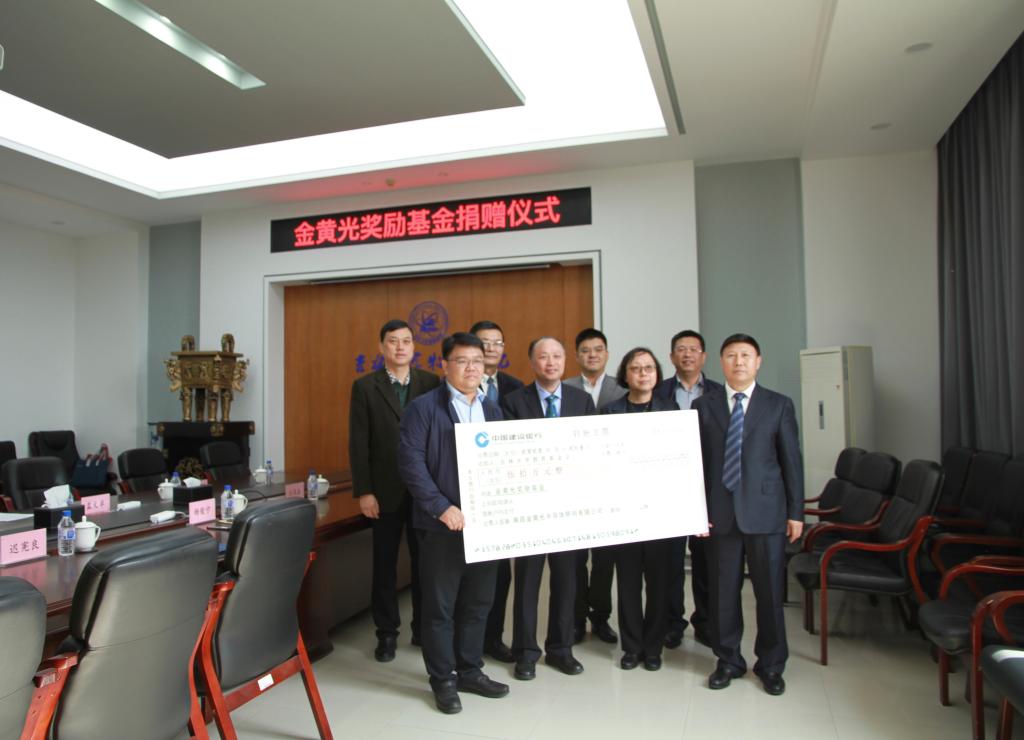 设立总额为50万元的“金黄光奖学金”,以感谢母校的培养,并希望能为母校的发展贡献力量。捐赠仪式在参会领导和嘉宾合影留念后圆满结束。