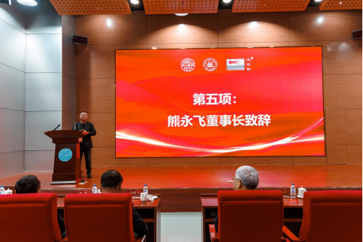 对熊永飞一行的到访表示热烈欢迎,对大地熊公司慷慨捐赠以及对母校持续发展的深切关怀表达了衷心的感谢。他高度赞扬了大地熊公司励志的发展历程和对社会的强烈责任感,并期望未来双方能够在人才培养、科学研究、实习实践等多个方面加强合作,携手培养更多杰出人才,为社会的进步和繁荣贡献力量。