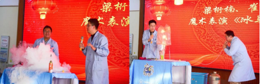 联欢会的节目表演精彩纷呈。由贺天民老师带来的俄罗斯民歌《三套车》,将大家带到了冰雪覆盖的伏尔加河上;由外籍教师Vindhyawasini Prasad带来的独唱,亦让大家感受到不同文化的魅力。小朋友刘君竹、刘子竹带来了朗诵《冰雪颂》,李梓涵、李晨妍表演了歌伴舞《把未来点亮》,传递了满满的正能量,展现了物理人下一代的风采。梁桁楠老师和崔航老师的魔术表演《冰与火之歌》,让人惊叹的同时,更体会到了物理的奇妙。张汉壮老师的魔术表演给大家带来了无数的欢声笑语。行政工会带来了合唱《小美满》,轻快的旋律和温馨的歌词让温暖与幸福在会场徜徉。在精彩纷呈的文艺节目表演之间,还穿插了互动游戏和幸运大抽奖等环节,现场欢腾不已,师生们在其乐融融的氛围里共同度过了一个难忘又美好的下午。