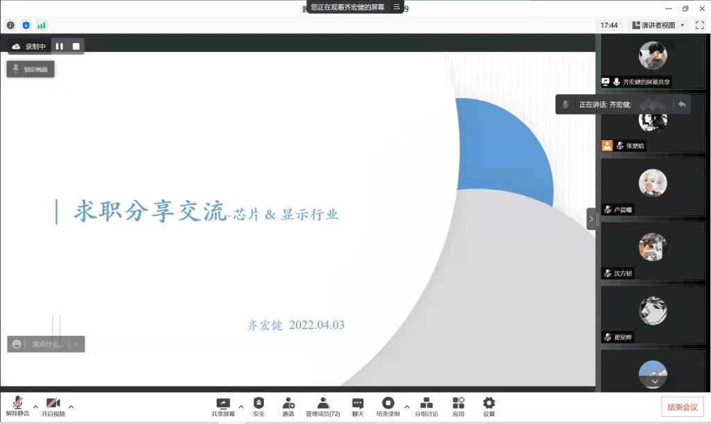 接下来,由签约东北师大附属中学的骆嘉达同学就招聘信息获取、教师面试流程、面试经验技巧与同学们展开交流。骆嘉达鼓励同学们要多投简历,多参加面试,不断总结自己面试中的不足并不断改进。