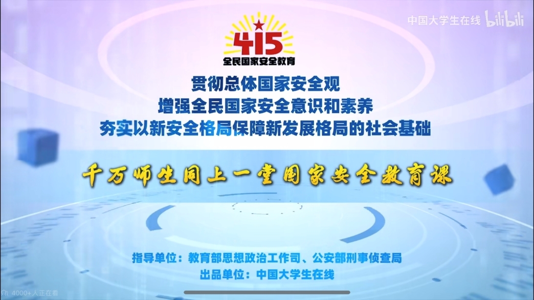 党委统一部署,2023年4月14日,研究生办公室组织全体研究生收看“千万师生同上一堂国家安全教育课”主题公开课。