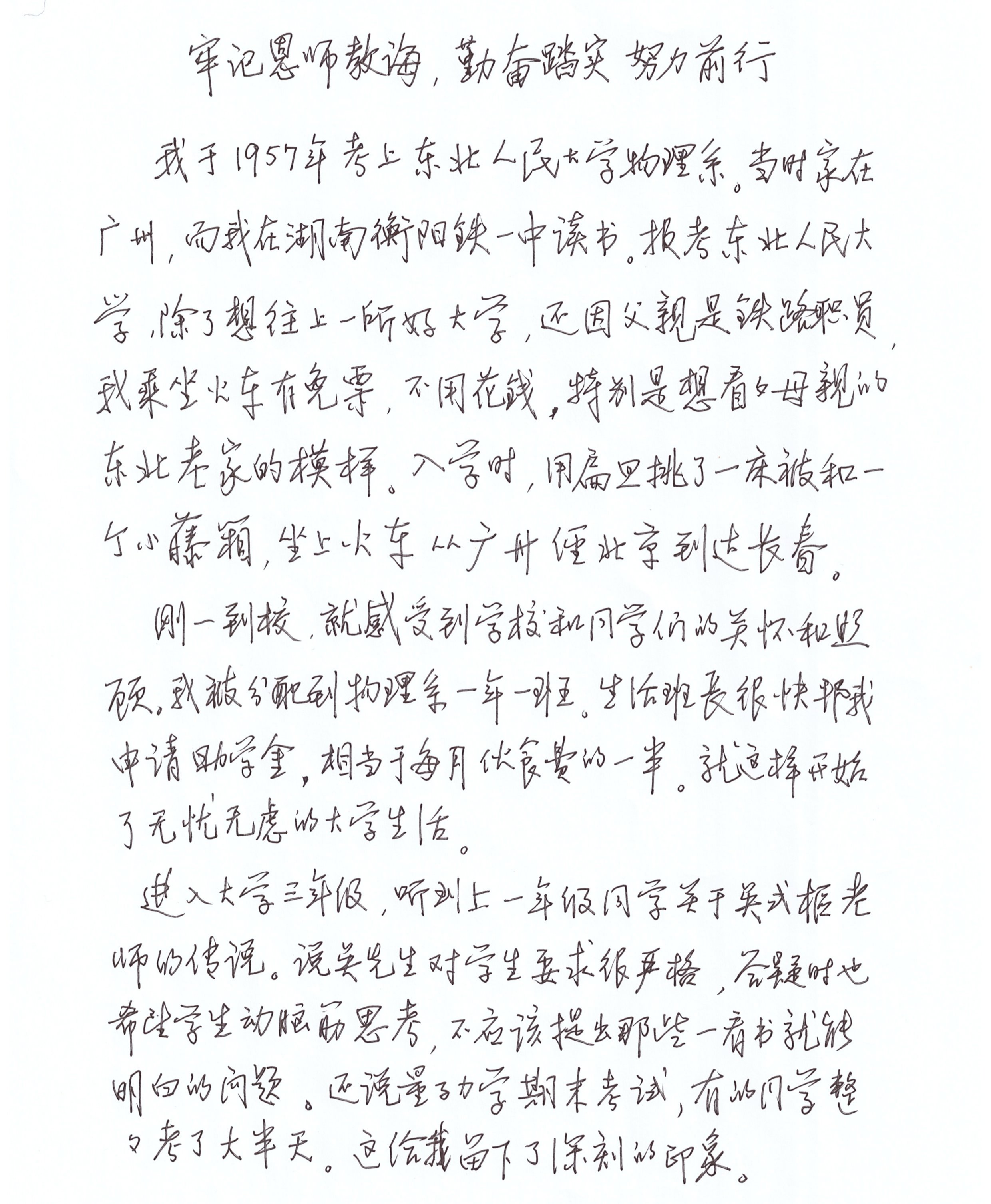 牢记恩师教诲,勤奋踏实努力前行